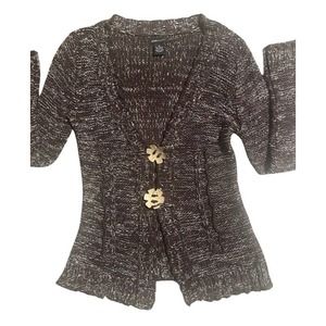 BCBGMAXAZRIA Cardigan Sweater Caitlin Brown Multi Colored Ruffled Edges Size MED