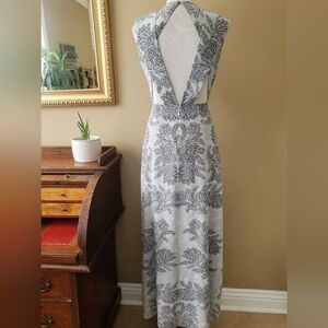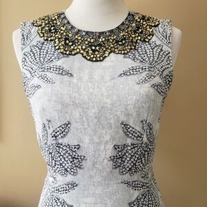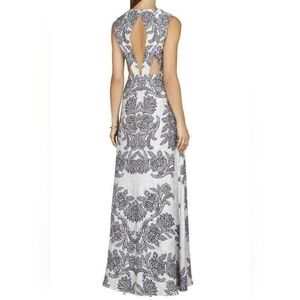 BCBGMAXAZRIA Chloey Sleeveless Printed Rhinestone Gown Embellished Collar Size 4