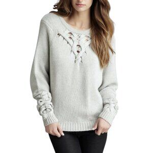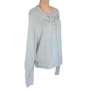 BCBGMAXAZRIA Chunky Sweater Sz.L Gray Wool Blend Boho Chic Coastal Neutral Cozy