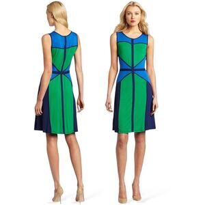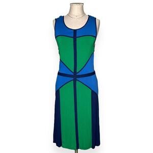 BCBGMAXAZRIA Colette Jersey Dress Mini Colorblock Cocktail Sleeveless Blue Green