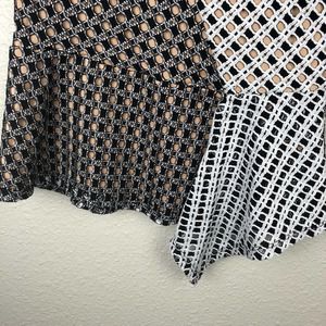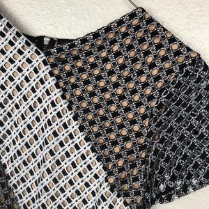 BCBGMAXAZRIA Color Block Eyelet Black & White Peplum Top