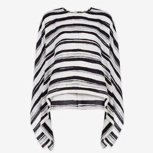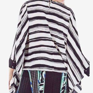 BCBGMAXAZRIA Cordelia Oversized Drape Blouse, Black White Ecru Stripe| Size M/L