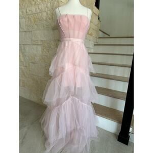 BCBGMAXAZRIA Corset Tulle Gown in Pink Tint US 4