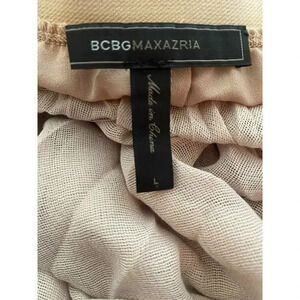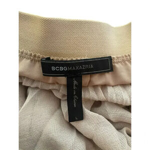 BCBGMAXAZRIA Cream Elastic Waist Midi Pleated Flared Skirt Size Large