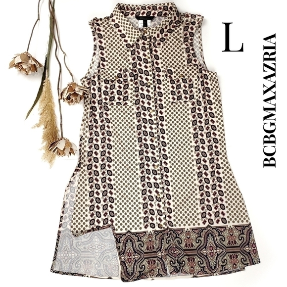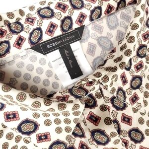 BCBGMAXAZRIA Cream Red Paisley Print Button Down Poly Tunic Top Sz L