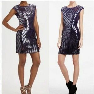 BCBGMAXAZRIA DRESS COCKTAIL EVENING FULLY SEQUINED MINI BODYCON S WOMENS SMALL
