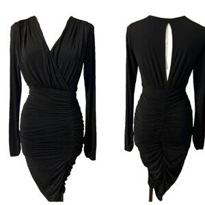 BCBGMAXAZRIA Dalton Dress M Medium Black Open Back Stretch Long Sleeve