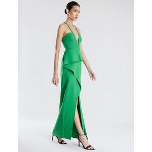 BCBGMAXAZRIA Daphne Peplum Crepe Evening Gown Malachite Womens Size 0