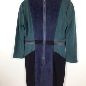 BCBGMAXAZRIA Dark Fern BEATRIZ Faux Suede Colorblock Long Sleeve Sheath Dress M