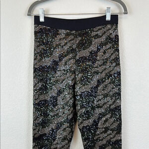 BCBGMAXAZRIA Dena Green and Black Camo Sequin Leggings Size Small