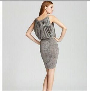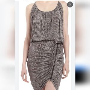 BCBGMAXAZRIA Doris Drape Asymetrical Zipper Snake Print Mini Dress Size Medium