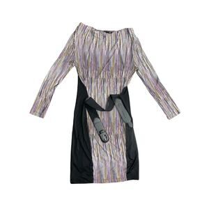 BCBGMAXAZRIA Dress Cowl Neck Multicolor Striped Belted Midi size small