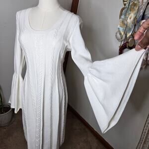 BCBGMAXAZRIA Dress M Ivory Bell Sleeve Cable Knit Boho 70s Retro Hippie Romantic