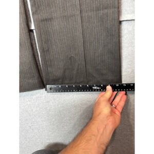 Sophisticated dress pants featuring a subtle herringbone pattern. These trousers offer a professional look with a touch of classic style. The pants are designed with a bootcut leg, providing a flattering silhouette. Details include a button and zipper closure, a smooth waistband, and functional pockets. The overall construction and design make these pants a versatile addition to any wardrobe.