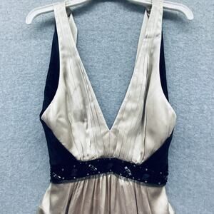 BCBGMAXAZRIA Dress Womens Size 2 Champagne Black Silk Beaded Gown y2k fairycore