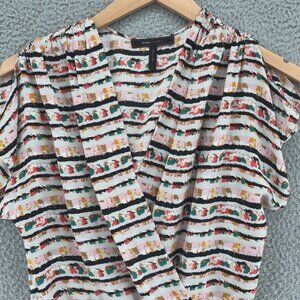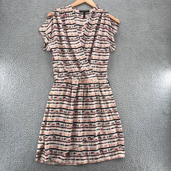 BCBGMAXAZRIA Dress Womens Small Ivory Multicolor Stripe Silk Shift Surplice Mini