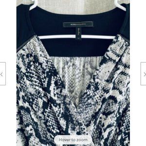 BCBGMAXAZRIA Dress Womens XS Black Gray Snakeskin Print V-Neck Sleeveless.