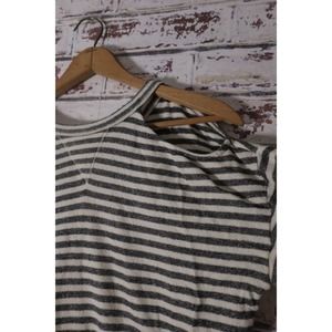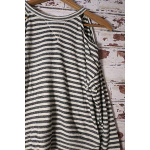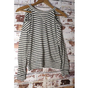 BCBGMAXAZRIA Eznei Pure Cotton Cold Shoulder Cutout Knit Gray Striped Blouse