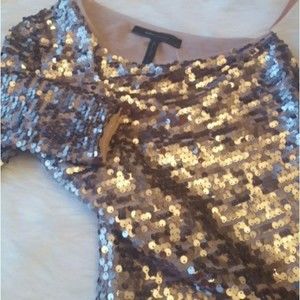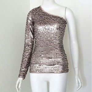 BCBGMAXAZRIA FULL SEQUIN ONE SLEEVE BLOUSE SMALL WOMENS S