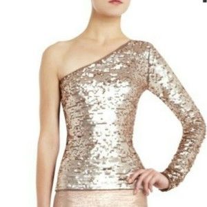 BCBG MAXAZRIA ONE SHOULDER SEQUINED TOP