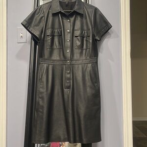 BCBGMAXAZRIA Faux Leather Shirt Dress with Short Sleeves