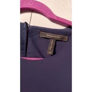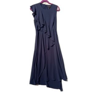 BCBGMAXAZRIA Flattering Navy Faux Wrap Asymmetrical Ruffle Midi Dress XS