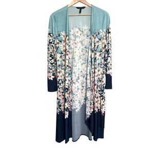 BCBGMAXAZRIA Floral Long Open Front Wrap Dress Kimono Duster Size Large