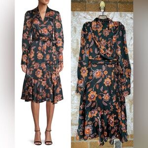 BCBGMAXAZRIA Floral Wrap Dress size medium in excellent condition . Retail $298 Exotic floral-print dress ties at the waist for a graceful fit-and-flare silhouette.