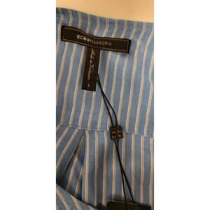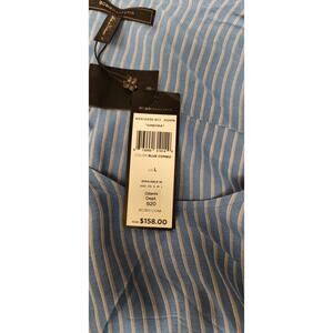 BCBGMAXAZRIA GINEVRA Striped Blue/Gray Scoop-Neck Wrap Hi-Lo Long Sleeve Blouse Size Large. Sold out top NWT