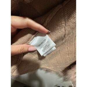 BCBGMAXAZRIA Real Fox Fur Vest in a gorgeous dusty pink hue. This luxurious vest features genuine fox fur on the front, providing incredible warmth and an opulent texture. The back is a soft, cozy knit with a subtle pattern, ensuring comfort and a flattering fit.