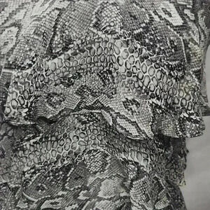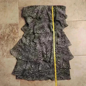 BCBGMAXAZRIA Ginger Strapless Layered Ruffle Snake Print Mini Dress