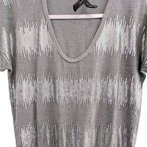 BCBGMAXAZRIA Gray and Silver Sequin V Neck Boxy T Shirt Size XS