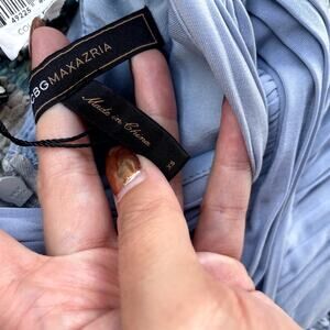 BCBGMAXAZRIA Grecian Pleated Twist Blue Gray Maxi Gown Dress - Size XS