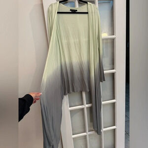 BCBGMAXAZRIA | Green Grey Ombre Open Front Wrap Cardigan High Low Size L NWOT