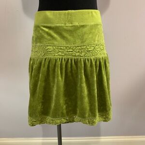 BCBGMAXAZRIA Green Velvet crochet Lace Trim Skirt y2k