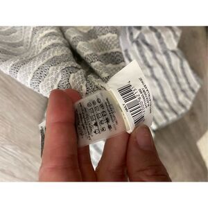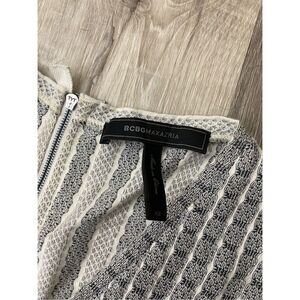 BCBGMAXAZRIA "Haily" Blouse Peplum Stripe Geometric, Black / Ivory, Size XS