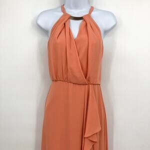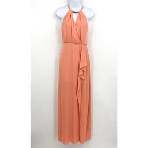 BCBGMAXAZRIA Halter Cascade Ruffle Formal Dress Size 0 Orange Sunset NWT FLAW