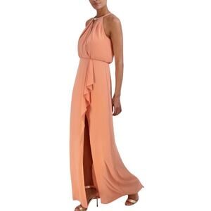 BCBGMAXAZRIA Halter Cascade Ruffle Formal Evening Dress Gown