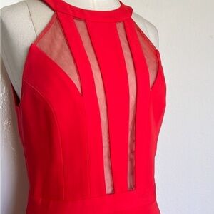 BCBGMAXAZRIA Halter Mesh Red Mini Dress