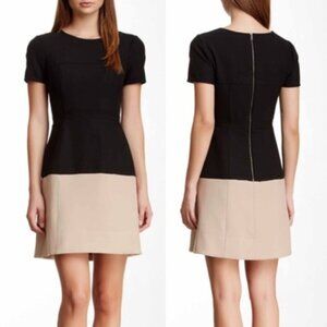 BCBGMAXAZRIA Hannah Dress Black Tan Brown Colorblock Color Block Fit Flare Mini