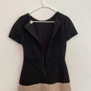 - black / tan brown colorblock color block crew neck short sleeve ponte knit fit & flare dress