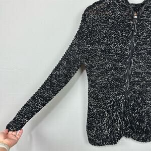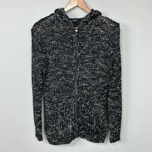 BCBGMAXAZRIA Hooded Cardigan Sweater Black Size M Chunky Open Knit Edgy Artsy