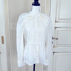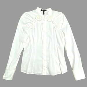 BCBGMAXAZRIA Ivory Rosette Fitted Dress Shirt Size L