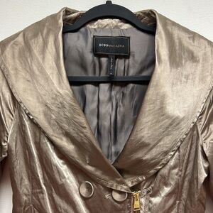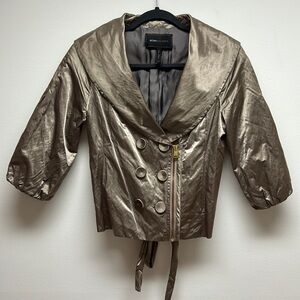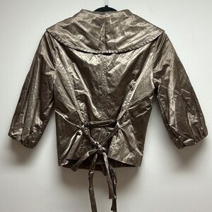 BCBGMAXAZRIA Jacket Women’s Metallic Gold Bubble Sleeve Shawl Collar Cropped XS
