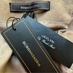 Elevate your wardrobe with this stunning BCBGMAXAZRIA Jaylyn Pencil Skirt in a timeless Mocha hue. Made from faux suede, this skirt combines sophistication and comfort, perfect for both professional settings and evening outings.