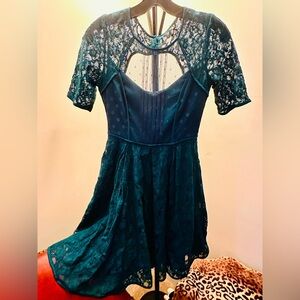 BCBGMAXAZRIA Julya Dark Teal Lace Dress, Size 0, EUC