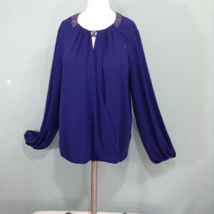BCBGMAXAZRIA Kaelyn Satin Jewel Neckline Blouse New Size Large