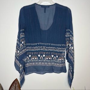 BCBGMAXAZRIA Kasia Handkerchief-sleeve Silk Chiffon Wrap Top Stormy Blue Combo
