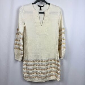 BCBGMAXAZRIA Keely Tunic Dress Long Sleeve Metallic Stripe Boho Notch Neck Sz XS