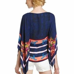 BCBGMAXAZRIA Kei Scarf Print Poncho top Slip on blouse Women Sz XS/S